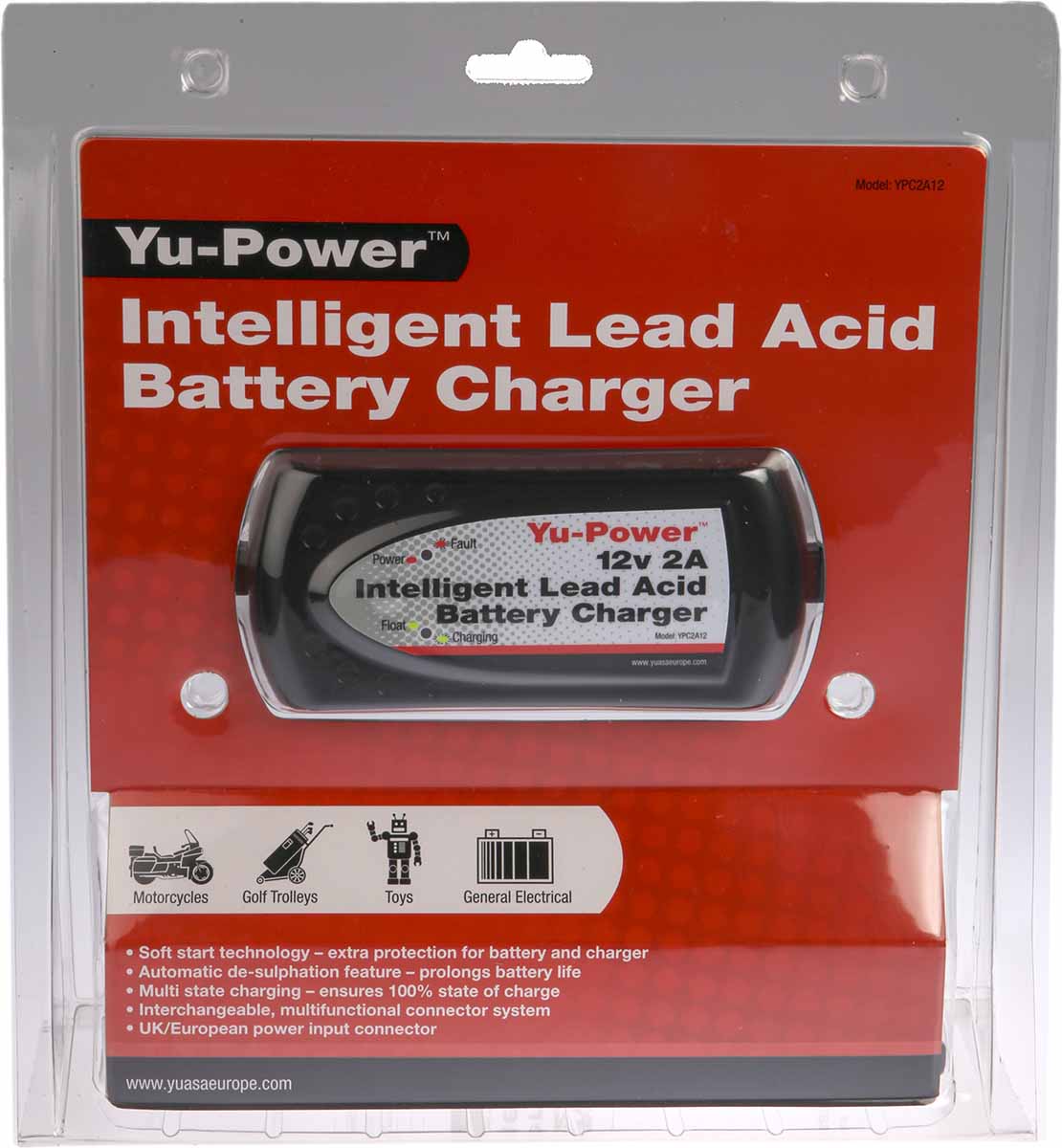 This is 13.65V 2A Automatic Lead Acid Battery Charger manufactured by Yuasa. The manufacturer part number is YPC2A12. The given dimensions of the product include 140 x 65 x 42mm. The typical product's weight is 450g. The product includes batteries no . The plug is a highly reliable eu, uk with long service life. It is lead acidchemistries charged . Moreover, it has 1 charged batteries . Its input voltage is 220 → 260v ac. In addition, it has a typical 2a charge current . Features a 13.65v output voltage.