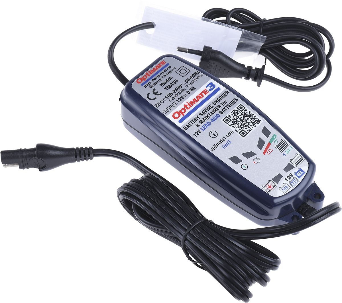 This is OptiMate 3 Variable Voltage 800mA Lead Acid Battery Charger EU Plug manufactured by TecMate. The manufacturer part number is TM430. It has a standard 12 v size charged battery . The given dimensions of the product include 167 x 65 x 46mm. The typical product's weight is 600g. The product includes batteries no . The plug is a highly reliable eu with long service life. It has a model number optimate 3. It is lead acidchemistries charged . Moreover, it has 1 charged batteries . Its input voltage is 100 → 240v. In addition, it has a typical 800ma charge current . Features a 12v output voltage. Additionally, it has a/an automotive type charged battery .
