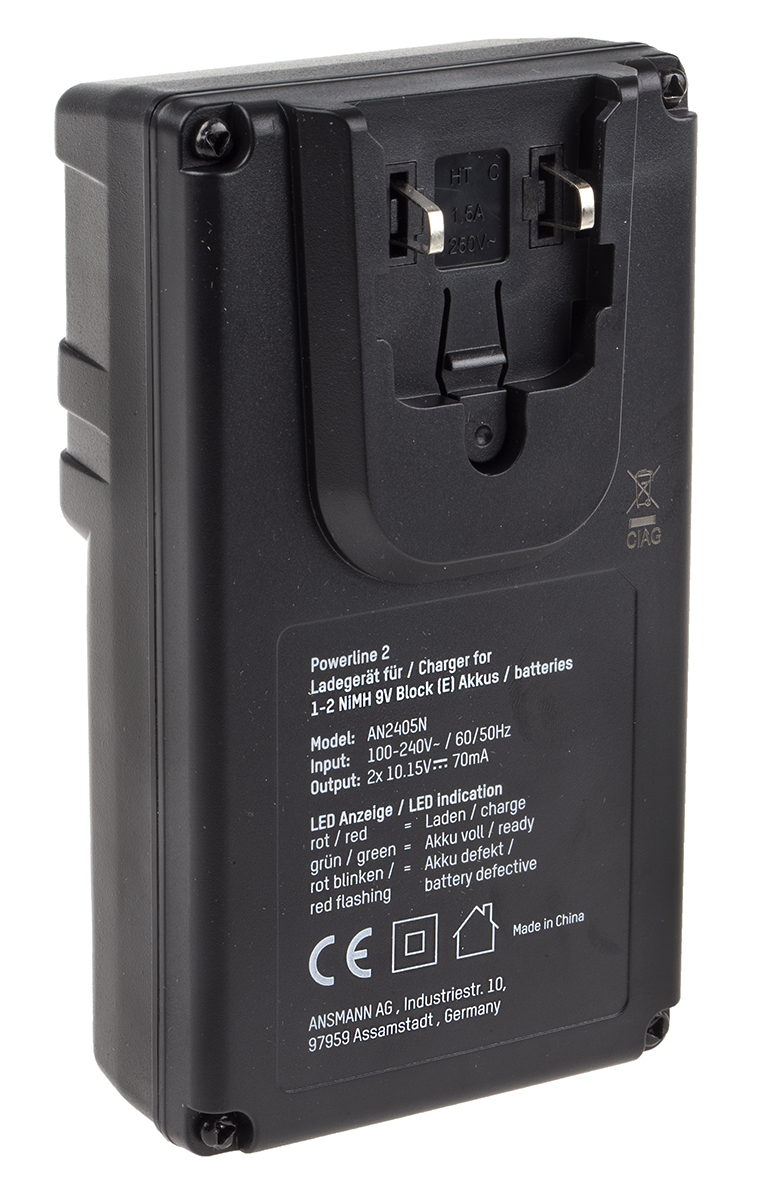 This is Battery Pack Charger manufactured by Ansmann. The manufacturer part number is 1001-0063-UK. It has a standard 9v size charged battery . The given dimensions of the product include 124 x 70 x 48.7mm. The typical product's weight is 155g. It has standard 2 charged cells . It is nicd, nimhchemistries charged . It has a model number powerline 2. The plug is a highly reliable eu, uk with long service life. Moreover, it has 2 charged batteries . Its input voltage is 100 → 240v ac.