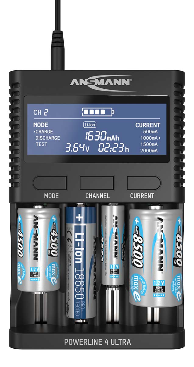 This is Powerline 4 Lithium-Ion Battery Charger with UKplug manufactured by Ansmann. The manufacturer part number is 1001-0080-UK. It has a standard aa, aaa, c, d, 32650, 26650, 21700, 18650, 16340, 10340 size charged battery . The given dimensions of the product include 109.8 x 170 x 37.5mm. The typical product's weight is 280g. The product includes batteries no . It has standard 4 charged cells . The plug is a highly reliable eu, uk with long service life. It has a model number powerline 4 ultra. It is lithium-ion, nimhchemistries charged . Moreover, it has 4 charged batteries . Its input voltage is 12v. In addition, it has a typical 2x 2000ma, 3x 1500ma, 4x 500ma/1000ma charge current . With usb output connectors, it is considered one of the best product . Additionally, it has a/an li-ion, nimh type charged battery .