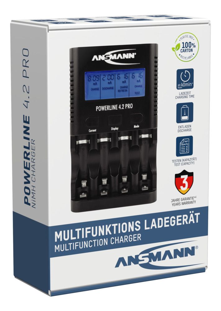 This is 1001-0079 NiMH AA AAA Battery Charger with Worldwideplug manufactured by Ansmann. The manufacturer part number is 1001-0079-UK. It has a standard aa, aaa size charged battery . The given dimensions of the product include 80 x 130 x 31mm. The typical product's weight is 260g. The product includes batteries no . It has standard 4 charged cells . The plug is a highly reliable eu, uk with long service life. It has a model number powerline 4.2 pro. It is nimhchemistries charged . Moreover, it has 4 charged batteries . Its input voltage is 100 → 240v ac. In addition, it has a typical 400ma, 600ma, 800ma, 1.5a, 1.8a charge current .