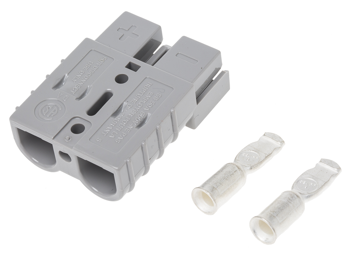 This is Grey 120A heavy duty connector 10mm2 manufactured by Anderson Power Products. The manufacturer part number is W-6319G1M. It has a decent grey colour. The product contains 2 contacts. The product has a current rating of 50a. The product is available in cable mount configuration.