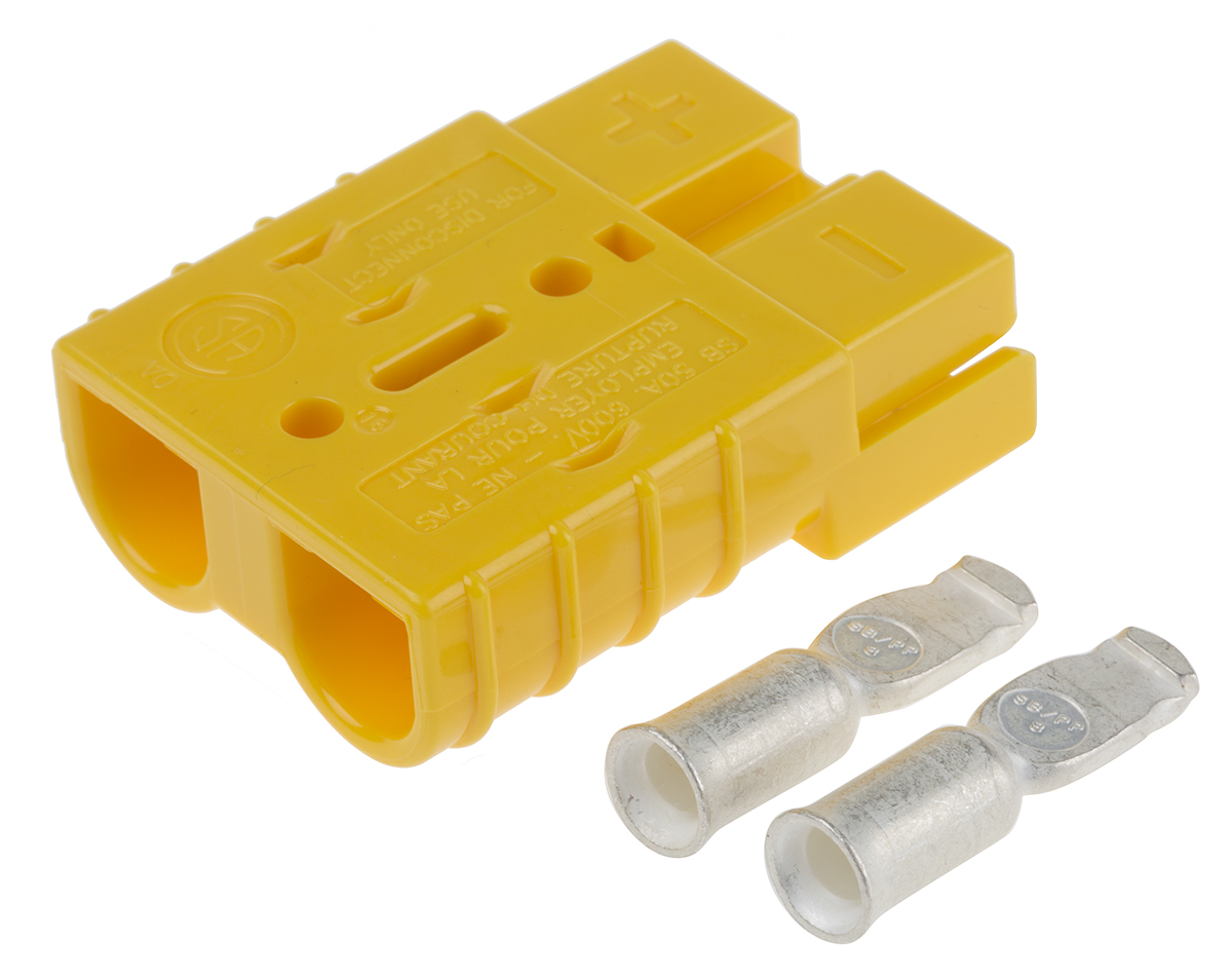 This is Red 450A heavy duty connector 50mm2 manufactured by Anderson Power Products. The manufacturer part number is 6322G7. It has a decent yellow colour. The product has a current rating of 50a.