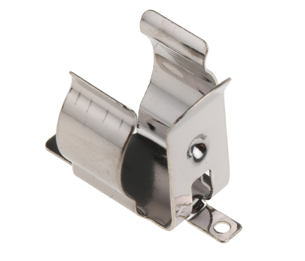 This is Battery Clip for 1 manufactured by Keystone. The manufacturer part number is 55. The given dimensions of the product include 9.5 x 12.7mm. The product has a pcb mount . It is comprised of 1 cells. Its terminal contact is made up of spring steel material . It is designed for aaa, n size battery . It comes in clip configuration.