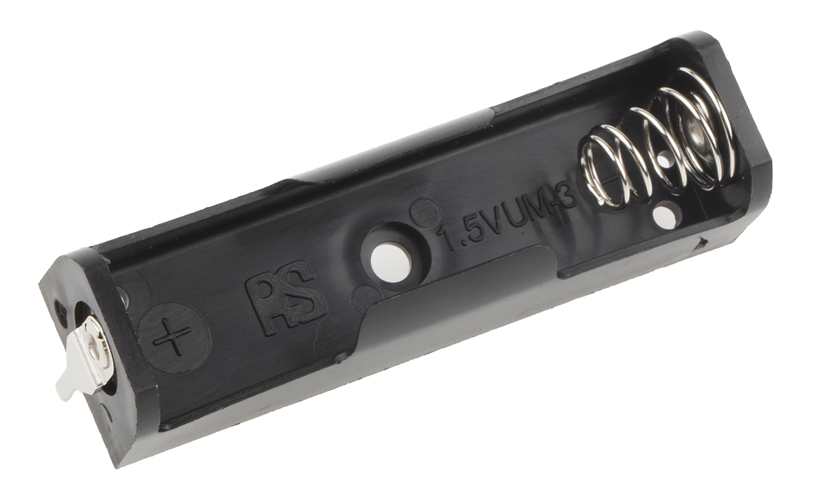 This is AA PCB Battery Holder Coil Spring Contact manufactured by RS Pro. The manufacturer part number is 611-9576. The given dimensions of the product include 57.2 x 16.4 x 14.8mm. The product has a pcb mount . It is comprised of 1 cells. The product's body is nicely designed from pp materials. Its terminal contact is made up of nickel plated steel material . The terminal contact is kind of coil spring. It is designed for aa size battery . It comes in battery holder configuration.