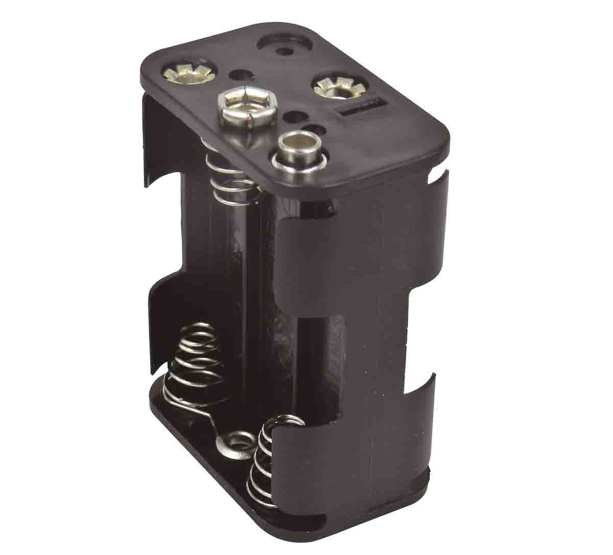 This is AA Battery Holder manufactured by RS PRO. The manufacturer part number is 185-4636. Additionally, it has 14.5mm maximum cell diameter . The given dimensions of the product include 58 x 45 x 28mm. The product has a snap-in mount . It is comprised of 6 cells. The product's body is nicely designed from pp materials. Its terminal contact is made up of nickel plated spring steel material . It is designed for aa size battery . It comes in battery holder configuration.