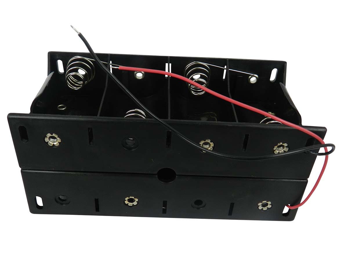This is D Battery Holder manufactured by RS PRO. The manufacturer part number is 185-4681. Additionally, it has 34.2mm maximum cell diameter . The given dimensions of the product include 142 x 73 x 62mm. The product has a wire lead mount . It is comprised of 8 cells. The product's body is nicely designed from pp materials. Its terminal contact is made up of nickel plated spring steel material . The terminal contact is kind of coil spring. It is designed for d size battery . It comes in battery holder configuration.