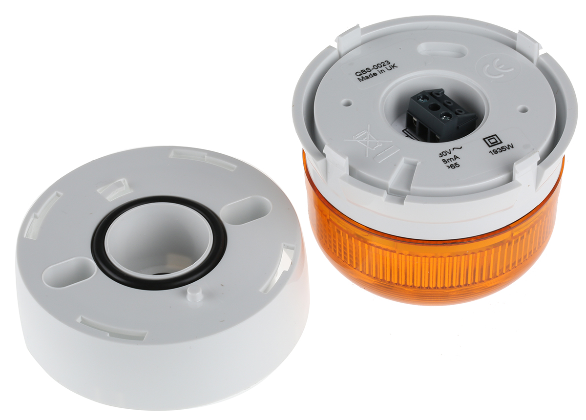 This is LED Steady Beacon Flashguard Xenon Series Amber Surface Mount 230 V ac manufactured by Klaxon. The manufacturer part number is QBS-0023. The housing has an adorable white colour. The lens has an adorable amber colour. The product is integrated with a led bulb. The product flashguard qbs, is a highly preferred choice for users. In addition, the height is 81mm. The product is available in surface mount style. This product harbours ac current. The product has +70°c maximum temperature. It includes a lamp yes . While its minimum temperature is -20°c. The product provides a steady lighting effect. The base diameter includes 85mm. Features 230 v ac supply voltage.