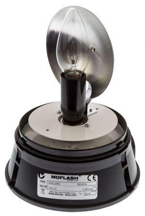 This is Incandescent Rotating Beacon R400 Series Surface Mount 115 V ac manufactured by Moflash. The manufacturer part number is R400-04. The housing has an adorable black colour. The lens has an adorable lens not included colour. The product is integrated with a incandescent bulb. The product r400, is a highly preferred choice for users. In addition, the height is 205mm. The product is available in surface mount style. This product harbours ac current. The product has +55°c maximum temperature. It includes a lamp yes . While its minimum temperature is -10°c. The product provides a rotating lighting effect. The base diameter includes 150mm. Features 115 v ac supply voltage.