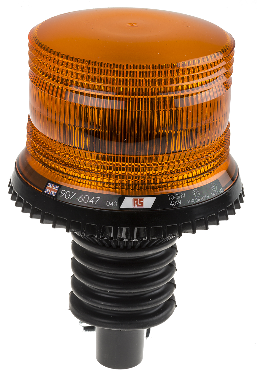 This is LED Flashing Beacon LFB Series Amber Flexi DIN Rail 10 → 30 V dc manufactured by RS Pro. The manufacturer part number is 907-6047. The housing has an adorable black colour. It consumes 1.3 a, 2 a current . The lens has an adorable amber colour. The product complies with all safety standards, such as emc (ece r10), rohs compliant. The product is integrated with a led bulb. It is IP rated with ip56. The product lfb, is a highly preferred choice for users. It is multifunctional yes . In addition, the height is 212mm. The product is available in flexi din mount style. This product harbours dc current. The product has +50°c maximum temperature. It includes a lamp yes . While its minimum temperature is -30°c. The product also provides special features, such as 3 point and single point models can be linked for synchronised flash, emc approved. The product provides a flashing lighting effect. The base diameter includes 137mm. Features 10 → 30 v dc supply voltage.