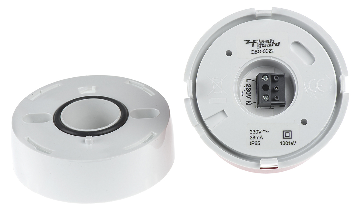 This is LED Steady Beacon Flashguard Xenon Series Red Surface Mount 230 V ac manufactured by Klaxon. The manufacturer part number is QBS-0022. The housing has an adorable white colour. The lens has an adorable red colour. The product is integrated with a led bulb. The product flashguard qbs, is a highly preferred choice for users. In addition, the height is 81mm. The product is available in surface mount style. This product harbours ac current. The product has +70°c maximum temperature. It includes a lamp yes . While its minimum temperature is -20°c. The product provides a steady lighting effect. The base diameter includes 85mm. Features 230 v ac supply voltage.