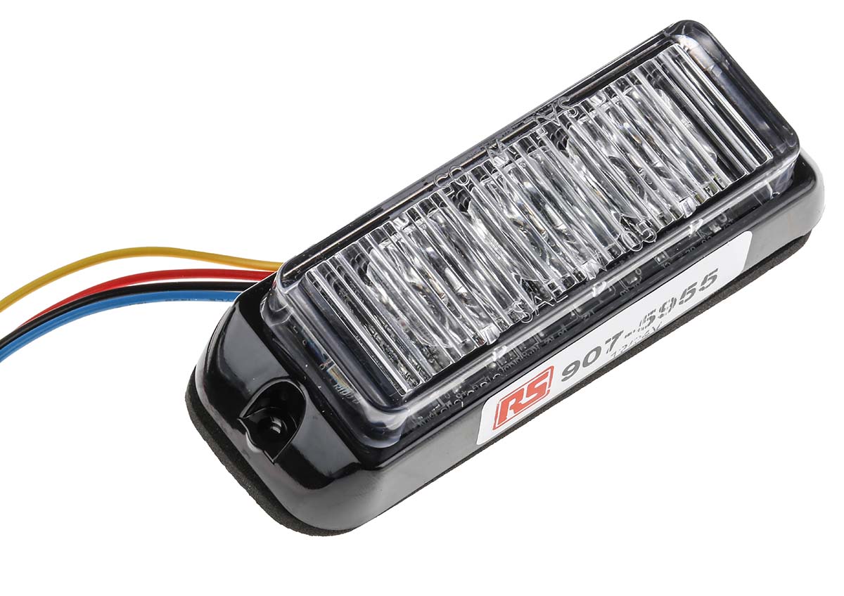 This is LED Flashing Light Module Amber Surface Mount 12/24 V dc manufactured by RS Pro. The manufacturer part number is 907-5955. Its base width is about 38mm . The lens has an adorable amber colour. The housing has an adorable black colour. The product complies with all safety standards, such as emc (ece r10), rohs compliant. The product is integrated with a led bulb. It is IP rated with ip67. It is multifunctional yes . In addition, the height is 28mm. The product is available in surface mount, wall mount style. This product harbours dc current. It includes a lamp yes . The product also provides special features, such as emc approved, multiple units can be linked for synchronised/alternate flash. The product provides a flashing lighting effect. It consumes 350ma current . Its base is 105mm in length . Features 12 v dc, 24 v dc supply voltage.