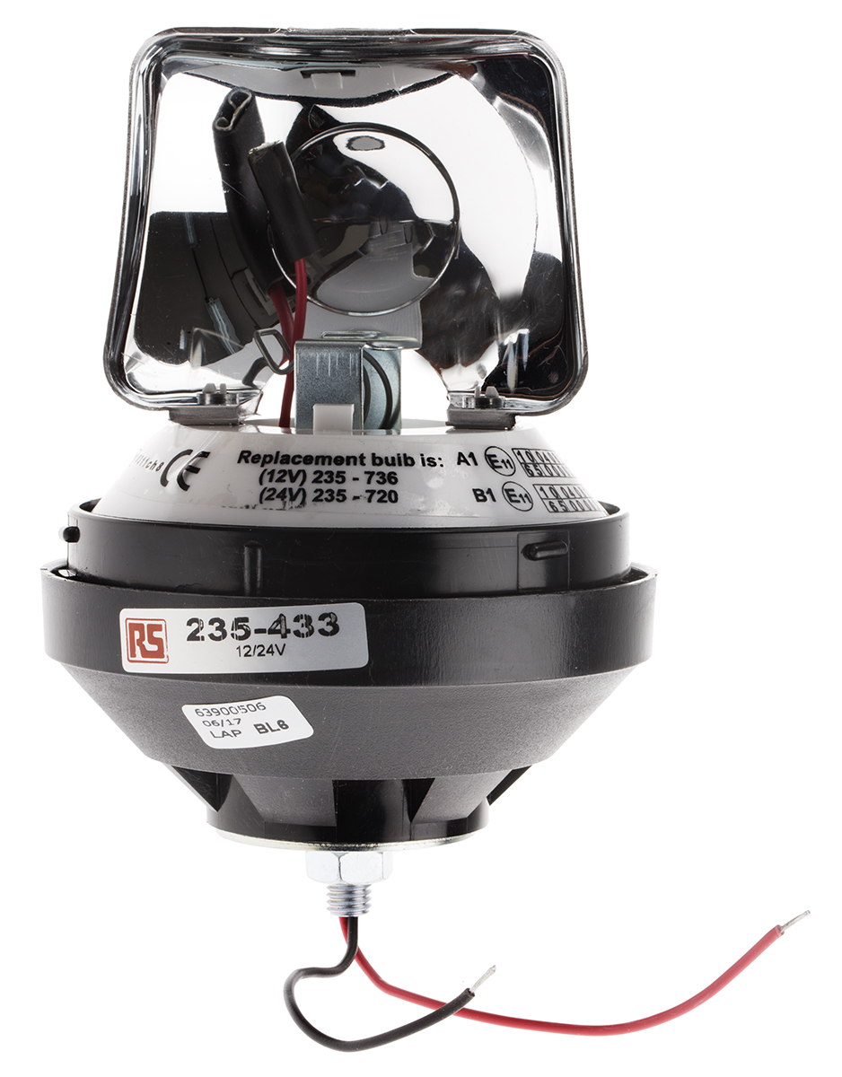 This is Incandescent Rotating Beacon V10994 Series Surface Mount 12 V dc 24 V dc manufactured by RS Pro. The manufacturer part number is 235-433. The housing has an adorable black colour. It consumes 3 a, 4.6 a current . The product has +50°c maximum temperature. The product complies with all safety standards, such as emc, rohs compliant. The product is integrated with a incandescent bulb. It is IP rated with ip56. The product v10994, is a highly preferred choice for users. In addition, the height is 203mm. The product is available in surface mount style. This product harbours dc current. It includes a lamp no . While its minimum temperature is -30°c. The product also provides special features, such as low noise operation. The product provides a rotating lighting effect. The base diameter includes 130mm. Features 12 v dc, 24 v dc supply voltage.