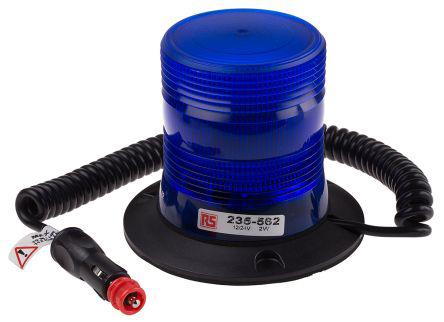 This is Xenon Flashing Beacon Blue Magnetic 10 → 30 V dc manufactured by RS Pro. The manufacturer part number is 235-562. The housing has an adorable black colour. It consumes 150 ma, 175 ma current . The lens has an adorable blue colour. The product complies with all safety standards, such as emc (ece r10), rohs compliant. The product is integrated with a xenon bulb. It is IP rated with ip56. While its minimum temperature is -30°c. In addition, the height is 130mm. The product is available in magnetic mount style. This product harbours dc current. The product has +50°c maximum temperature. It includes a lamp yes . The product also provides special features, such as low profile & compact design. The product provides a flashing lighting effect. The base diameter includes 150mm. Features 10 → 30 v dc supply voltage.