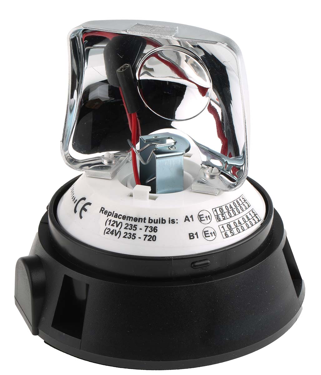 This is Incandescent Rotating Beacon V10993 Series Surface Mount 12 V dc 24 V dc manufactured by RS Pro. The manufacturer part number is 236-284. The housing has an adorable black colour. The product has +50°c maximum temperature. The product complies with all safety standards, such as rohs compliant. The product is integrated with a incandescent bulb. It is IP rated with ip56. The product v10993, is a highly preferred choice for users. In addition, the height is 207mm. The product is available in surface mount style. This product harbours dc current. It includes a lamp no . While its minimum temperature is -30°c. The product also provides special features, such as robust three point fixing. The product provides a rotating lighting effect. The base diameter includes 166mm. Features 12 v dc, 24 v dc supply voltage.