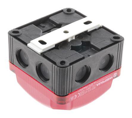 LED Beacon - 853 Series The 853 Series of LED beacons from Werma are available in 3 options, the permanent beacon, the intense double flash beacon with low power consumption and the attention grabbing EVS beacon with flickering light. All three models can be wall, base and ceiling mounted. They also save on installation time thanks to a snap-on fixing bracket: simply drill two holes, attach the fixing bracket to the wall and snap on the beacon. The cable can be fed through one of the eight self-sealing membranes without the need for any tools. Once the cable has been connected to the terminals, the lens can be clipped onto the base and secured using the four captive quick release screws Wall, base and ceiling mounted IP65 protection rating (with cable gland) Life duration of up to 50,000 hrs LED beacon in attractive quadratic form Innovative connector to create traffic light combinations Easy assembly due to quick release screws Eight self-sealing membranes for cable entry without tools Eight integrated M20 threads, no nuts required Conforms to the Low Voltage Directive and EMC Directive CE Mark, UL 508 standard