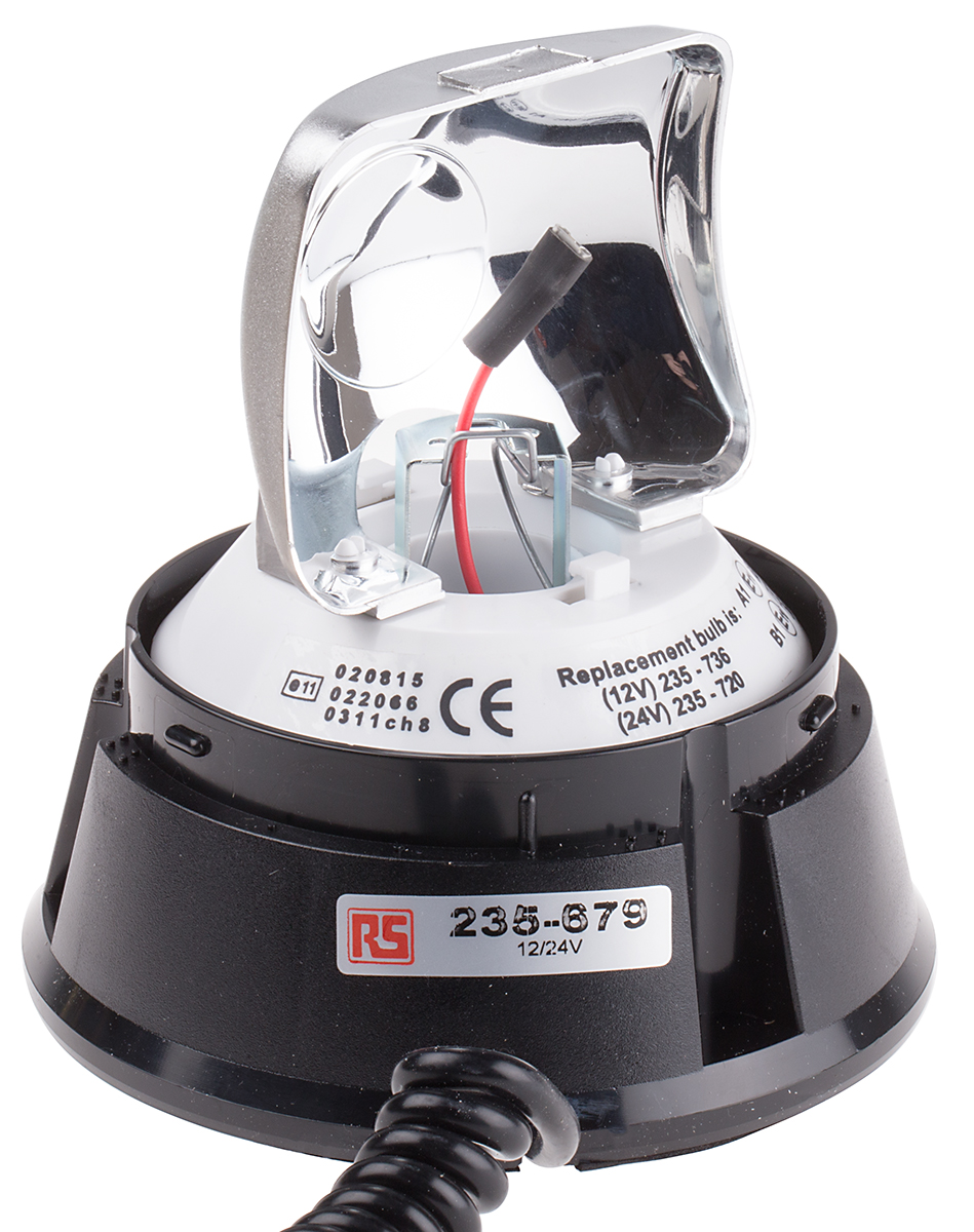 This is Incandescent Rotating Beacon V10993 Series Surface Mount 12 V dc 24 V dc manufactured by RS Pro. The manufacturer part number is 235-679. The housing has an adorable black colour. The product has +50°c maximum temperature. The product complies with all safety standards, such as rohs compliant. The product is integrated with a incandescent bulb. It is IP rated with ip56. The product v10993, is a highly preferred choice for users. In addition, the height is 207mm. The product is available in surface mount style. This product harbours dc current. It includes a lamp yes . While its minimum temperature is -30°c. The product also provides special features, such as robust three point fixing. The product provides a rotating lighting effect. The base diameter includes 166mm. Features 12 v dc, 24 v dc supply voltage.