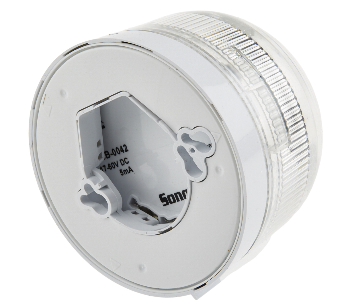 This is Sonos Beacon (LED) DC Clear Lens White manufactured by Klaxon. The manufacturer part number is PSB-0042. The housing has an adorable white colour. It consumes 5ma current . The lens has an adorable clear colour. The product is integrated with a led bulb. It is IP rated with ip21. While its minimum temperature is -25°c. In addition, the height is 104mm. The product is available in base mount style. This product harbours dc current. The product has +70°c maximum temperature. Features 17 → 60 v dc supply voltage. The base diameter includes 98mm.