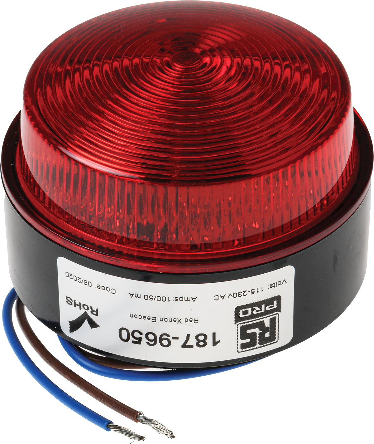 This is Xenon LP 115/230vAc 2W Red manufactured by RS PRO. The manufacturer part number is 187-9650. It consumes 50 ma, 100 ma current . The lens has an adorable red colour. The product is integrated with a xenon bulb. It is IP rated with ip67. In addition, the height is 50mm. The product is available in stud mount, surface mount style. This product harbours ac current. Features 115 → 230 v ac supply voltage. The product provides a flashing lighting effect. The base diameter includes 76mm.