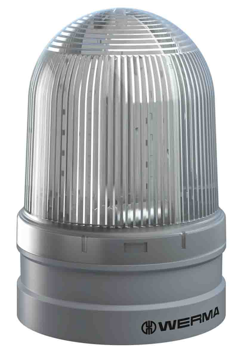 The Werma 262.410.70 is a versatile signalling device designed for high visibility and reliability. It is compatible with both 12V and 24V power systems and has a base mount configuration, offering flexible installation options across various environments. The beacon's bright white LED illumination ensures explicit signalling even in challenging lighting conditions, enhancing safety and awareness.