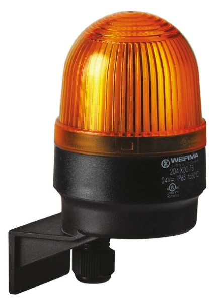 Flashing Beacon - Series 202/205 These flashing Xenon beacons from Werma are available in 2 options, the 202 series which is base mounted with a flat seal and the 205 series which is bracket mounted with cable gland (M12x1.5mm). They have a PA-GF, high impact housing and a PC transparent lens. Safe CAGE CLAMP® technology connection Optimum illumination Connection without the need to disassemble the product IP65 protection rating Life duration 4 x 10 6 flashes Conforms to the Low Voltage Directive and EMC Directive CE Mark, UL 508 standard