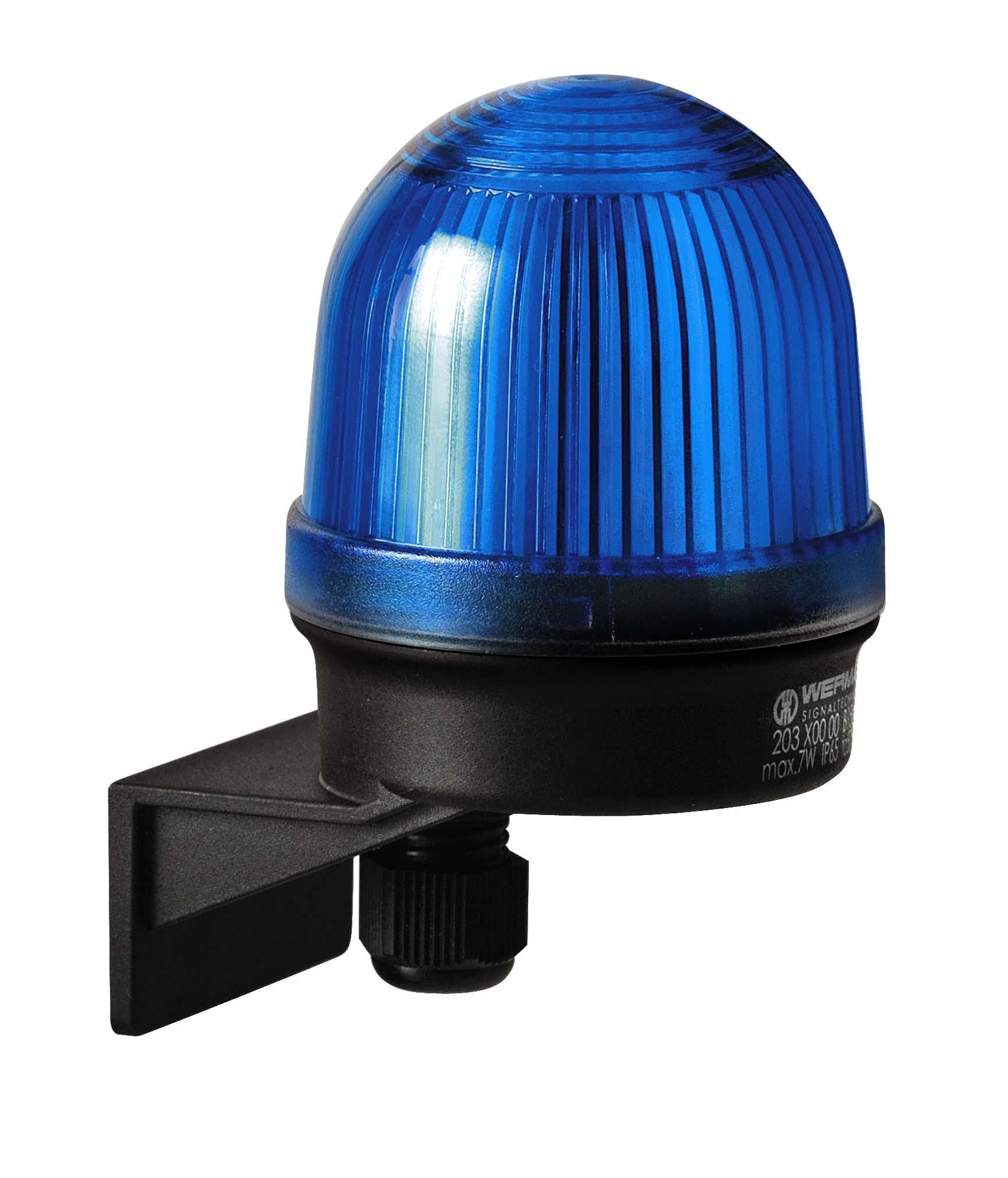 The 203 Series Blue Continuous Beacon's filament bulb provides classic lighting at 12 to 230V. Customer support was helpful, ensuring the wall mount fit our infrastructure.