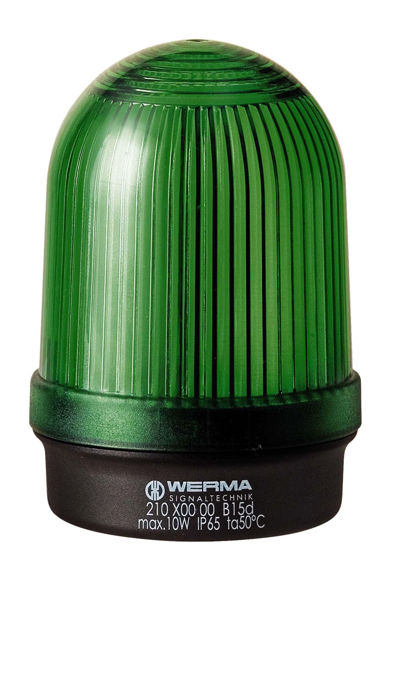 The Werma 210.200.00 Green Continuous Lighting Beacon is a robust illumination device designed for industrial environments. Featuring a base mount and powered by a 12 to 230-volt electrical system, this beacon utilises a durable filament bulb to emit a steady green light, ensuring clear visibility in various operational settings.