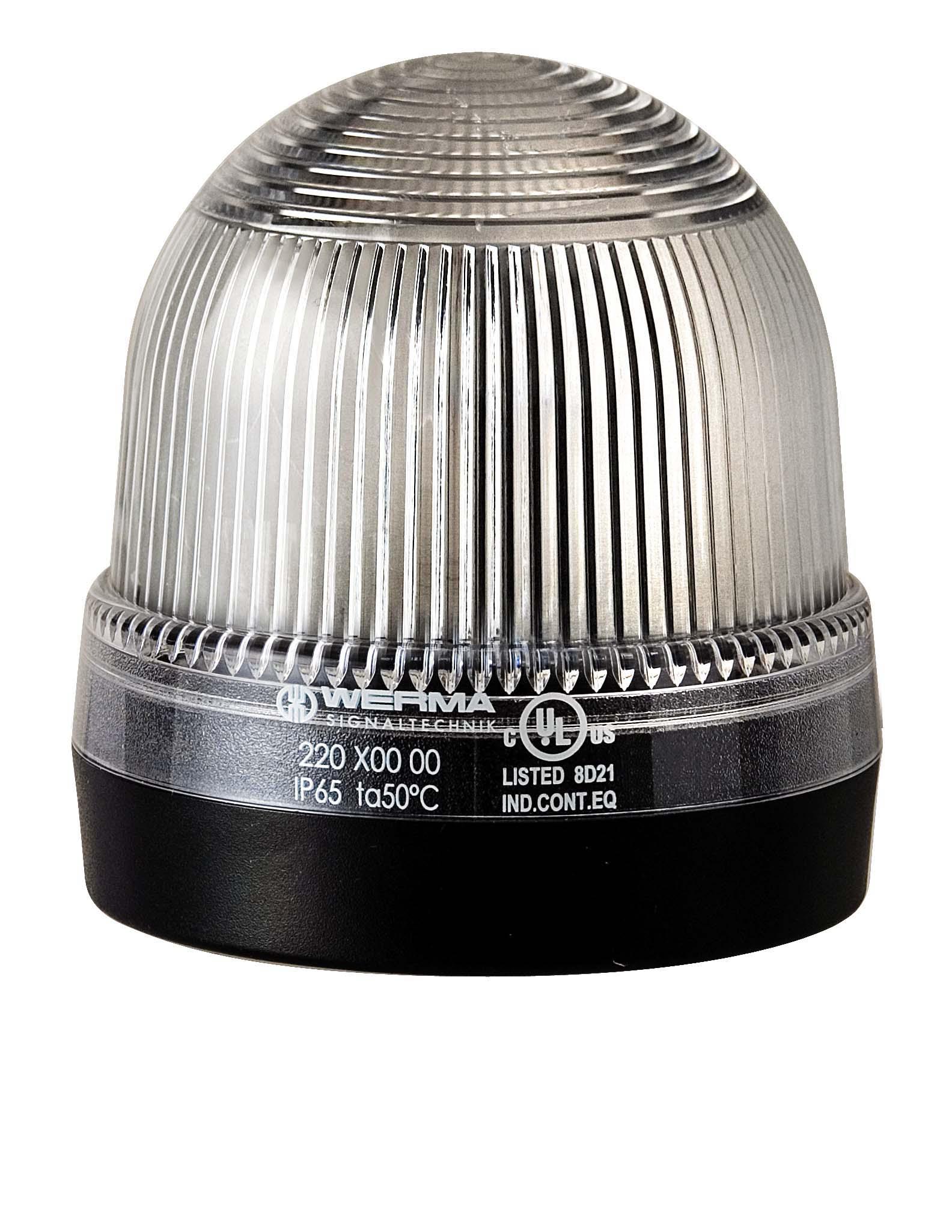 220 Series Clear Continuous Lighting Beacon, similar to its blue counterpart, offers unwavering visibility with a filament bulb that casts a steady, reassuring glow across a wide voltage range.