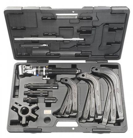 This is TMHP 10E 15 piece Hydraulic Puller Set manufactured by SKF. The manufacturer part number is TMHP10E. It allows to operate using hydraulic. The product consists of 15 pieces. In addition, it has a/an bearing puller type puller .