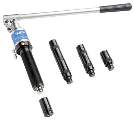 The SKF TMHS 100 is a robust hydraulic tool engineered for the efficient and safe extraction of bearings and other interference‑fitted components. Built with an integrated hydraulic pump, cylinder, and spindle assembly, it eliminates the need for separate hydraulic power units. With a maximum withdrawal force of 100 kN, an 80 mm piston stroke, and a 30 mm diameter nosepiece, this tool is designed for precision in challenging maintenance environments such as industrial gearboxes, drive systems and heavy‑duty rotating equipment.