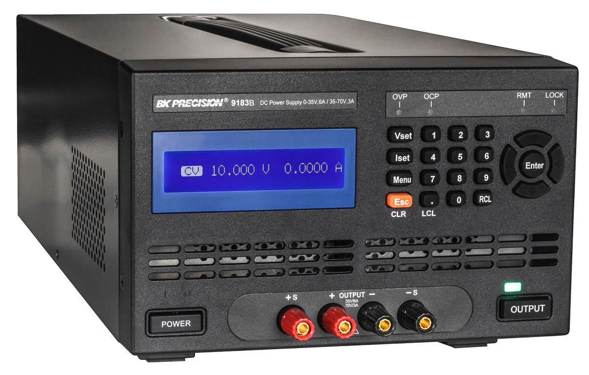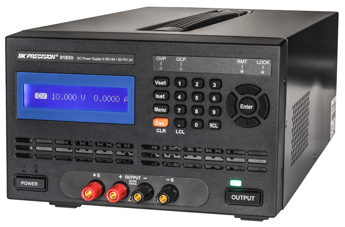 This is Digital Bench Power Supply 1 Output 0 → 35 V 0 → 70 V manufactured by BK Precision. The manufacturer part number is BK9183B. It is digital . Features a versatile binding post terminal output connector. It carries 6a output current. Additionally, the product is supplied with 1 outputs. The product has +40°c maximum temperature. The product 9183b, is a highly preferred choice for users. Input connector of iec 320. Its bench power supply is of dual range power supply type . It has a model number bk9183b. Features a 70v output voltage. Features 115 v ac, 230v ac supply voltage. While its minimum temperature is 0°c. It includes 1 display(s) . Feature 210w of power rating. It comes in digital configuration.