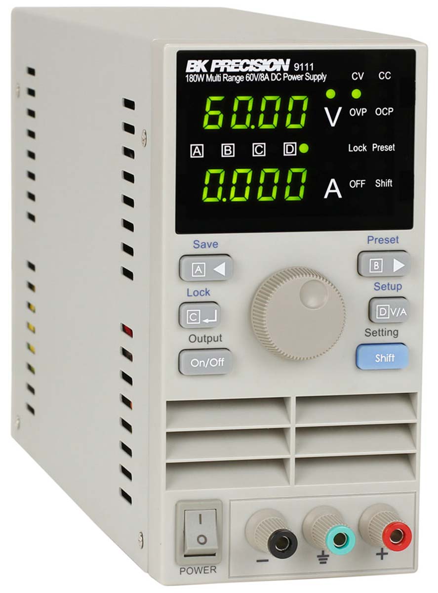 This is Bench Power Supply 1 Output 0 → 60V 0 → 8A 180W manufactured by BK Precision. The manufacturer part number is BK9111. It is digital . Features a versatile binding post terminal output connector. It carries 8a output current. Additionally, the product is supplied with 1 outputs. The product has +40°c maximum temperature. The product 9111, is a highly preferred choice for users. Input connector of iec 320. Its bench power supply is of multi range dc power supply type . It has a model number bk9111. Features a 0 → 60v output voltage. Features 110 v ac, 220v ac supply voltage. While its minimum temperature is 0°c. It includes 2 display(s) . Feature 180w of power rating. It comes in digital configuration.