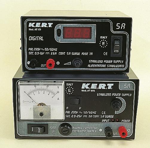 This is Digital Bench Power Supply 1 → 15V 5A manufactured by Kert. The manufacturer part number is AT5VD. Additionally, the product is supplied with 1 outputs. The product has +40°c maximum temperature. It carries 5a output current. While its minimum temperature is -10°c. Input connector of iec 320. Features a versatile binding post terminal output connector. Features a 0 → 15v output voltage. Features 230v ac supply voltage. It includes 1 display(s) . It comes in digital configuration.