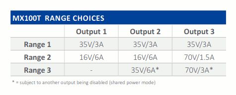 This is 51153-9440 Analogue Digital Bench Power Supply 3 Output 0 → 16 V 0 → 35 V 0 → 70 V manufactured by Aim-TTi. The manufacturer part number is MX100TP. It is digital . Features a versatile binding post terminal output connector. It carries 0 → 3 a, 0 →6a output current. Additionally, the product is supplied with 3 outputs. The product has +40°c maximum temperature. The product mx, is a highly preferred choice for users. Input connector of iec 320. Its bench power supply is of programmable dc power supply type . It has a model number mx100tp. Features a 0 → 16 v, 0 → 35 v, 0 → 70v output voltage. Features 110 → 240v ac supply voltage. While its minimum temperature is +5°c. It includes 3 display(s) . Feature 315w of power rating. It comes in digital configuration.