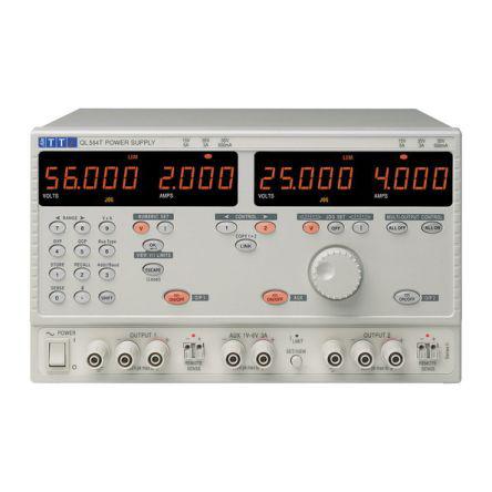 This is Digital Bench Power Supply 3 Output 0 → 25 V 0 → 56 V 1 → 6 V manufactured by Aim-TTi. The manufacturer part number is QL564T. Additionally, the product is supplied with 3 outputs. The product has +40°c maximum temperature. It carries 2 a, 4 a output current. While its minimum temperature is +5°c. Input connector of iec 320. Features a versatile binding post terminal output connector. Features a 0 → 15 v, 0 → 35 v output voltage. Features 115 v ac, 230 v ac supply voltage. It includes 4 display(s) . Feature 105w of power rating. It comes in digital configuration.