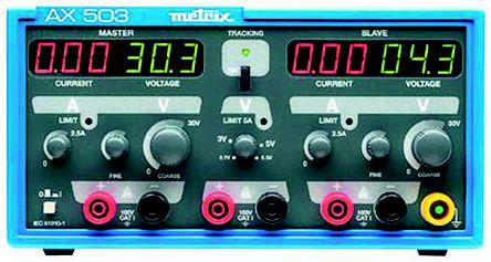 This is Digital Bench Power Supply 3 Output 0 → 30 V 2.7 → 5.5 V 5 A 0 → 2.5 A manufactured by Metrix. The manufacturer part number is AX0503A. Additionally, the product is supplied with 3 outputs. The product has +50°c maximum temperature. It carries 0 → 2.5 a, 5 a output current. While its minimum temperature is 0°c. Features a versatile 2-pin safety terminal output connector. It is calibrated rscal . Features 110 v ac, 230 v ac supply voltage. Features a 0 → 30 v dc, 2.7 → 5.5 v dc output voltage. It includes 2 display(s) . It comes in digital configuration.