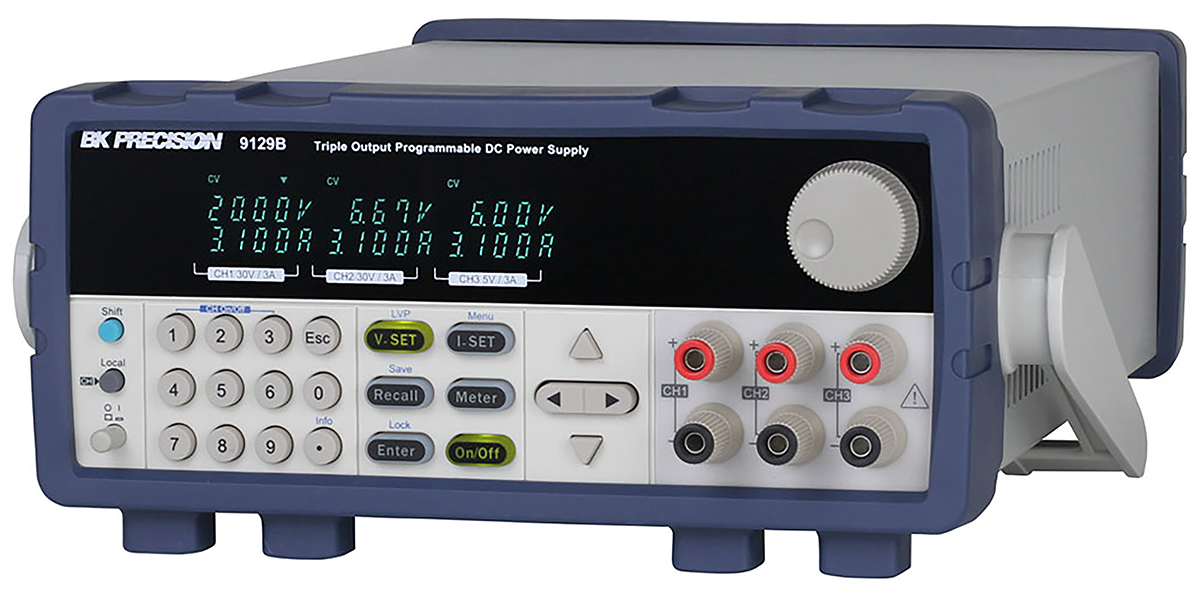 This is Bench Power Supply 3 Output 0 → 30 V 0 → 5 V 0 → 3A 195W manufactured by BK Precision. The manufacturer part number is BK9129B. It is digital . Features a versatile binding post terminal output connector. It carries 3a output current. Additionally, the product is supplied with 3 outputs. The product has +40°c maximum temperature. The product 9129b, is a highly preferred choice for users. Input connector of iec 320. Its bench power supply is of programmable dc power supply type . It has a model number bk9129b. Features a 0 → 30v output voltage. Features 110 v ac, 220v ac supply voltage. While its minimum temperature is 0°c. It includes 6 display(s) . Feature 195w of power rating. It comes in digital configuration.