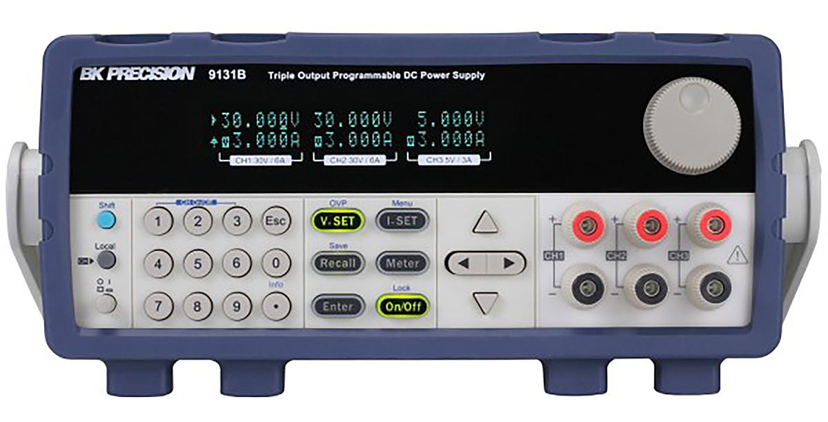 This is Bench Power Supply 3 Output 0 → 30 V 0 → 5 V 0 → 3 A 2 x 0 → 6 A manufactured by BK Precision. The manufacturer part number is BK9131B. It is digital . The product has +40°c maximum temperature. It carries 6a output current. Additionally, the product is supplied with 3 outputs. While its minimum temperature is 0°c. Input connector of iec 320. Its bench power supply is of programmable dc power supply type . Features a versatile binding post terminal output connector. Features a 30v output voltage. Features 110 v ac, 220v ac supply voltage. It includes 6 display(s) . Feature 375w of power rating. It comes in digital configuration.
