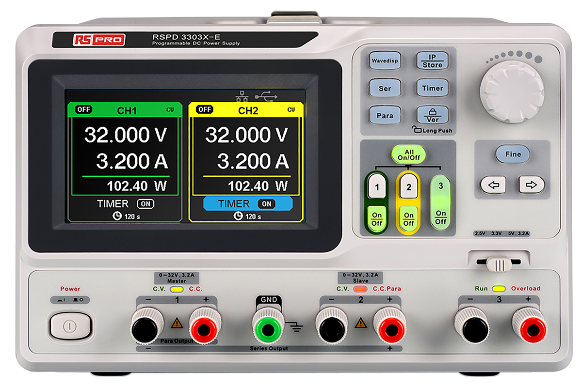 This is Bench Power Supply Programmable Linear 220W 3 Output 2 x 0 → 32 V 2.5 → 5 V 3.2A manufactured by RS PRO. The manufacturer part number is 123-6650. It is digital . The product has +40°c maximum temperature. It carries 3.2a output current. Additionally, the product is supplied with 3 outputs. While its minimum temperature is 0°c. Input connector of cee 7/7 german schuko / french. Its bench power supply is of programmable power supply type . Features a versatile lan, usb output connector. It is calibrated ukas . Features 230v ac supply voltage. Features a 2 x 0 → 32 v, 2.5 → 5v output voltage. It includes 2 display(s) . Feature 220w of power rating. It comes in digital configuration.
