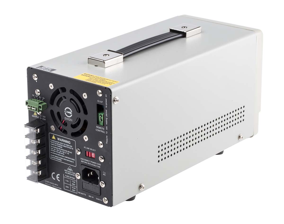 This is Switching Power Supply Digital 360W 1 Output 0 → 18V dc 0 → 20A With UKAS Calibration manufactured by RS PRO. The manufacturer part number is 123-3823. It is digital . The product has +40°c maximum temperature. It carries 0 → 20a output current. Additionally, the product is supplied with 1 outputs. While its minimum temperature is 0°c. Its bench power supply is of switching power supply type . Features a versatile plug-in terminal block output connector. It is calibrated ukas . Features 115 (±10 %) v ac, 230 (±15 %) v ac supply voltage. Features a 0 → 18v dc output voltage. It includes 2 display(s) . Feature 360w of power rating. It comes in digital configuration.