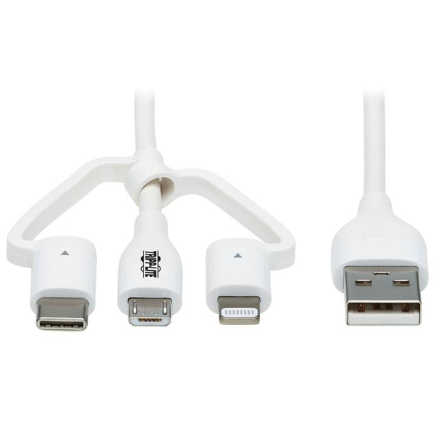 This is manufactured by Tripp Lite. The manufacturer part number is M101AB-004-LMCW. It is assigned with possible HTSUS value of 8544.42.2000. The product is rohs3 compliant. Furthermore, the product is shielded with unshielded. In addition, it is reach unaffected. It is shipped in bulk package . usb a male plug to micro usb b male, usb c male, and i5 lightning connector Connector type offer robust functionality. Its typical moisture sensitivity level is not applicable. Its accurate length is 4.00' (1.22m). It has a long 10 weeks standard lead time. It has a classic white colour. It is a typical round cable. The product is designated with the ear99 code number.