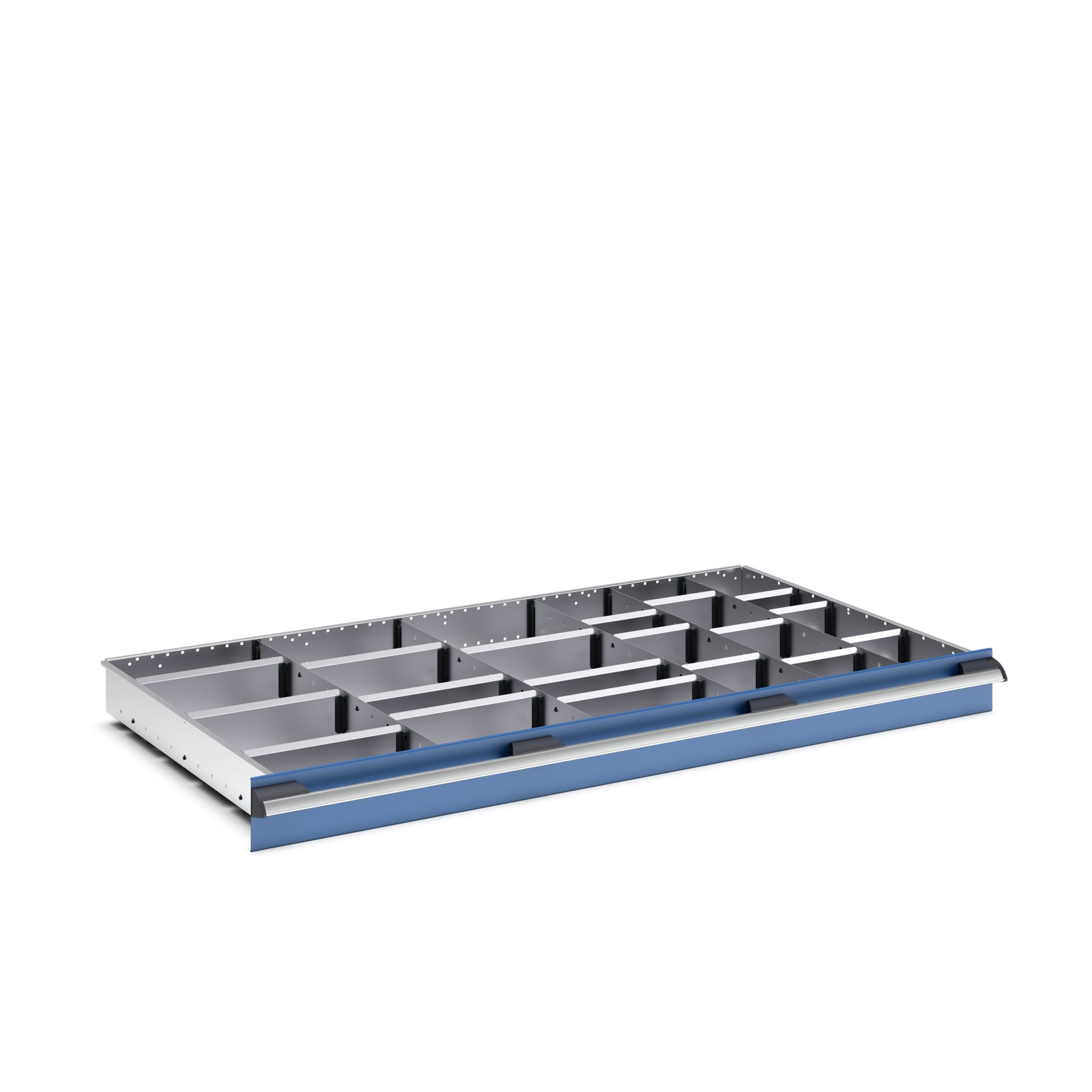 This is Divider Panel Divider Set for use with Drawers manufactured by Bott. The manufacturer part number is 43020748.51. The product is highly suitable for drawers. It has a decent silver colour. The product is made from highly stable and reliable sheet steel. It comes in divider panel configuration. The given dimensions of the product include 1300 x 750 x 100mm.
