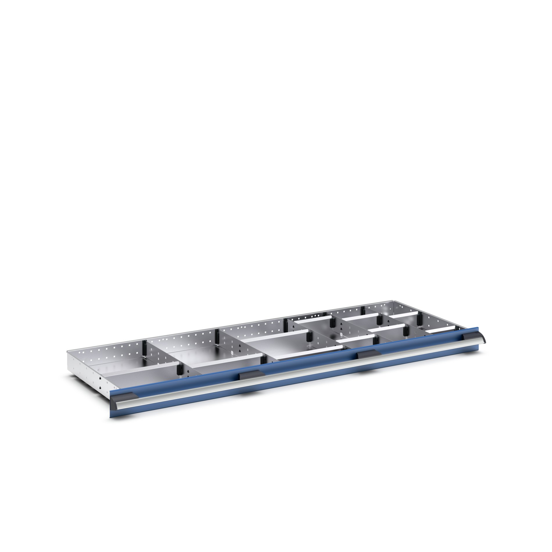 This is Divider Panel Divider Set for use with Drawers manufactured by Bott. The manufacturer part number is 43020743.51. The product is highly suitable for drawers. It has a decent silver colour. The product is made from highly stable and reliable sheet steel. It comes in divider panel configuration. The given dimensions of the product include 1300 x 525 x 75mm.
