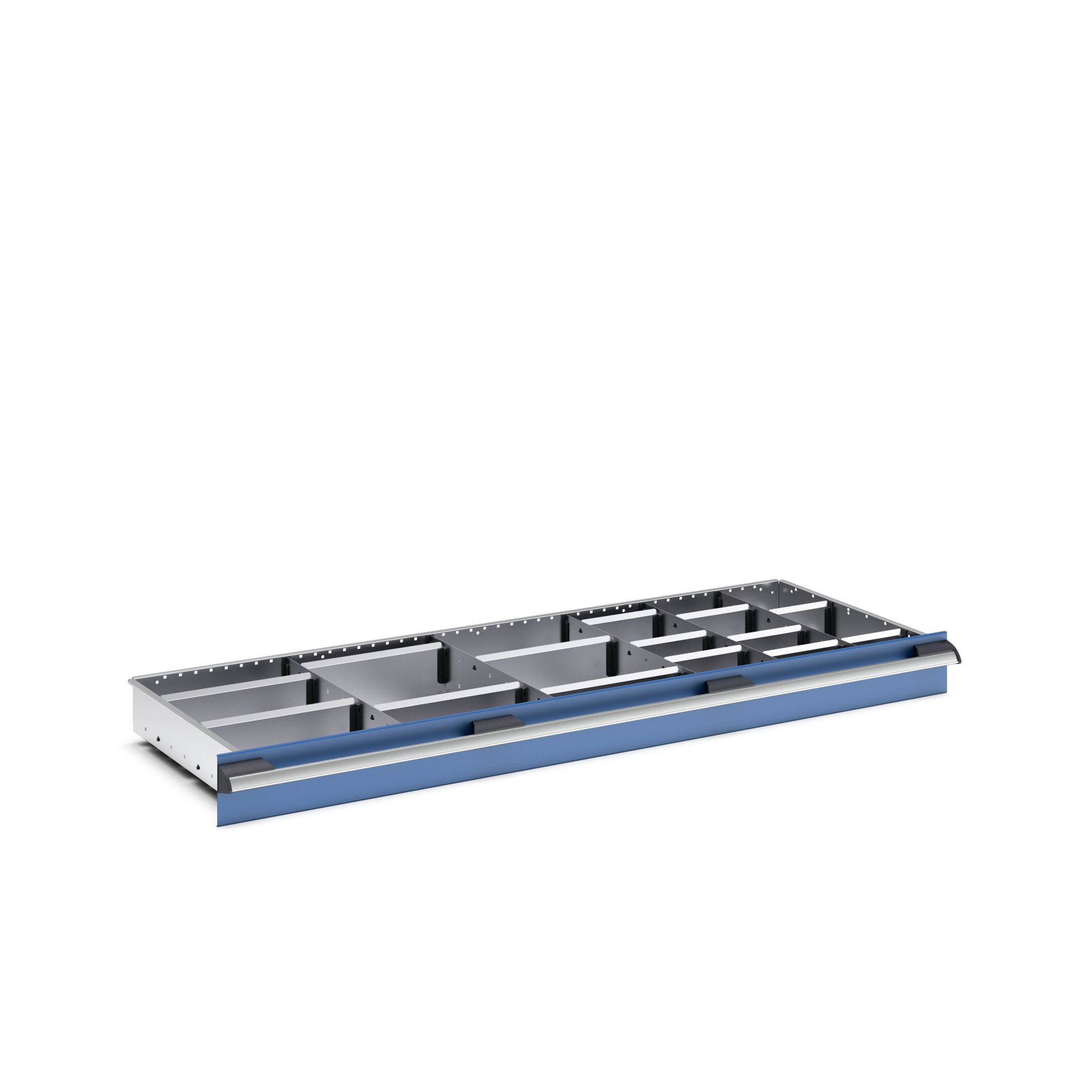 This is Divider Panel Divider Set for use with Drawers manufactured by Bott. The manufacturer part number is 43020691.51. The product is highly suitable for drawers. It has a decent silver colour. The product is made from highly stable and reliable sheet steel. It comes in divider panel configuration. The given dimensions of the product include 1300 x 525 x 100mm.