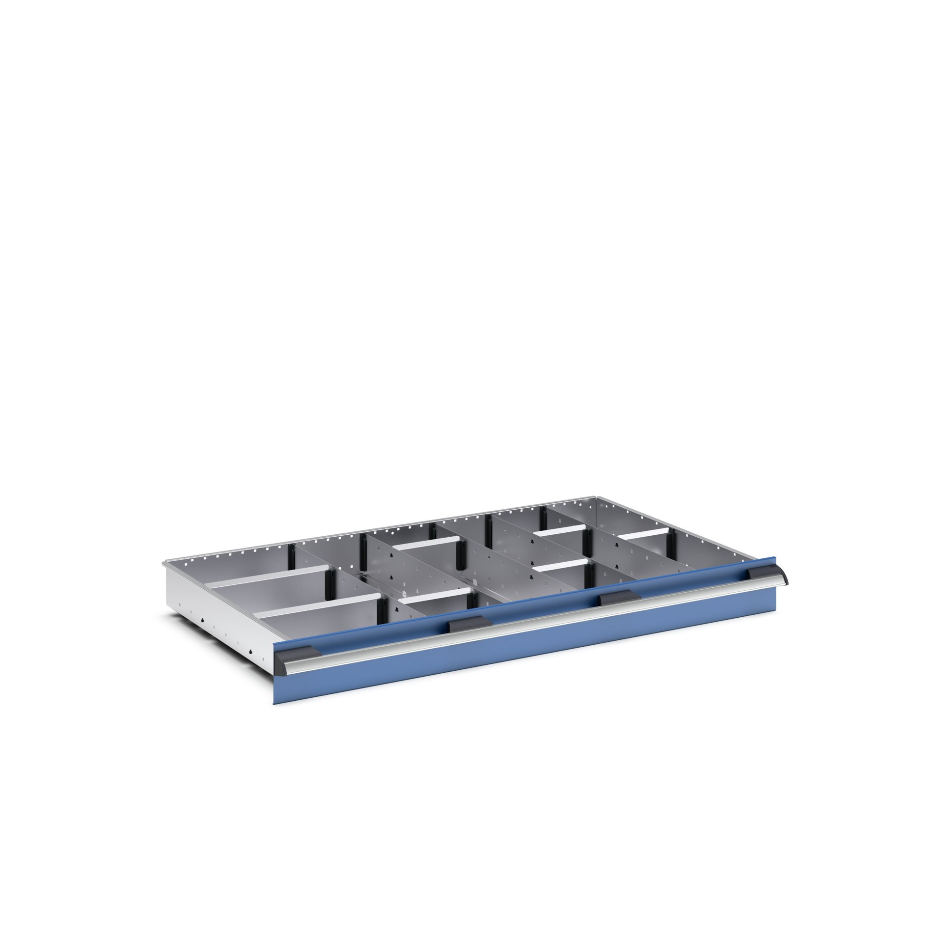 This is Divider Panel Divider Set for use with Drawers manufactured by Bott. The manufacturer part number is 43020678.51. The product is highly suitable for drawers. It has a decent silver colour. The product is made from highly stable and reliable sheet steel. It comes in divider panel configuration. The given dimensions of the product include 1050 x 650 x 100mm.