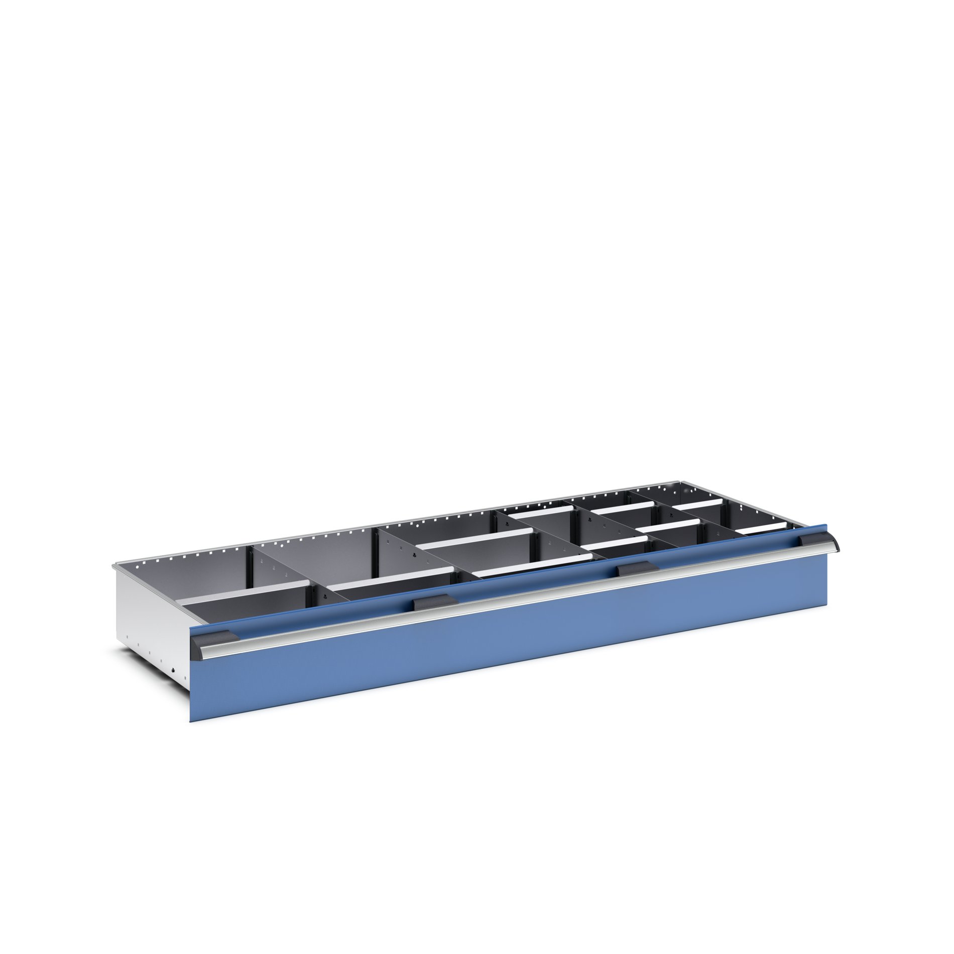 This is Divider Panel Divider Set for use with Drawers manufactured by Bott. The manufacturer part number is 43020742.51. The product is highly suitable for drawers. It has a decent silver colour. The product is made from highly stable and reliable sheet steel. It comes in divider panel configuration. The given dimensions of the product include 1300 x 525 x 150mm.