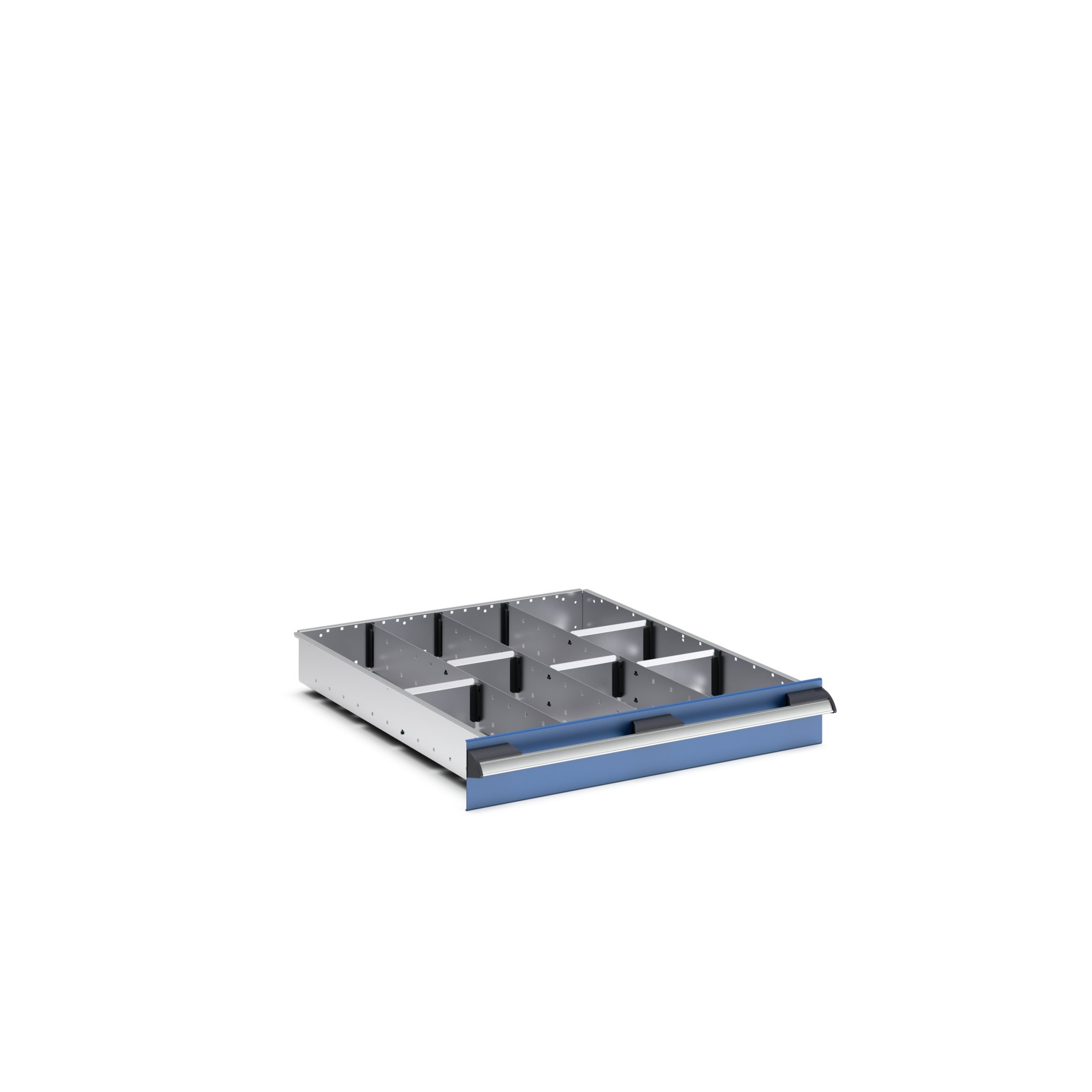This is Divider Panel Divider Set for use with Drawers manufactured by Bott. The manufacturer part number is 43020649.51. The product is highly suitable for drawers. It has a decent silver colour. The product is made from highly stable and reliable sheet steel. It comes in divider panel configuration. The given dimensions of the product include 650 x 750 x 100mm.