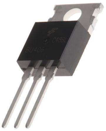 This is Fairchild NPN Transistor 7 A 200 V 3-Pin TO-220 manufactured by Fairchild Semiconductor. The manufacturer part number is BU406TU. The transistor is a npn type. The given dimensions of the product include 9.9 x 4.5 x 9.2mm. The product is available in through hole configuration. Provides up to 60 w maximum power dissipation. The product has a maximum 1 v collector emitter saturation voltage . Additionally, it has 400 v maximum collector base voltage. Whereas features a 200 v of collector emitter voltage (max). In addition, the product has a maximum 1.2 v base emitter saturation voltage . In addition, the height is 9.2mm. Furthermore, the product is 4.5mm wide. Its accurate length is 9.9mm. The package is a sort of to-220. It consists of 1 elements per chip. Moreover, it has a maximum DC collector current of 7 a. It features a 6 v of maximum emitter base voltage. It has a maximum operating temperature of +150 °c. It contains 3 pins. The product offers single transistor configuration.