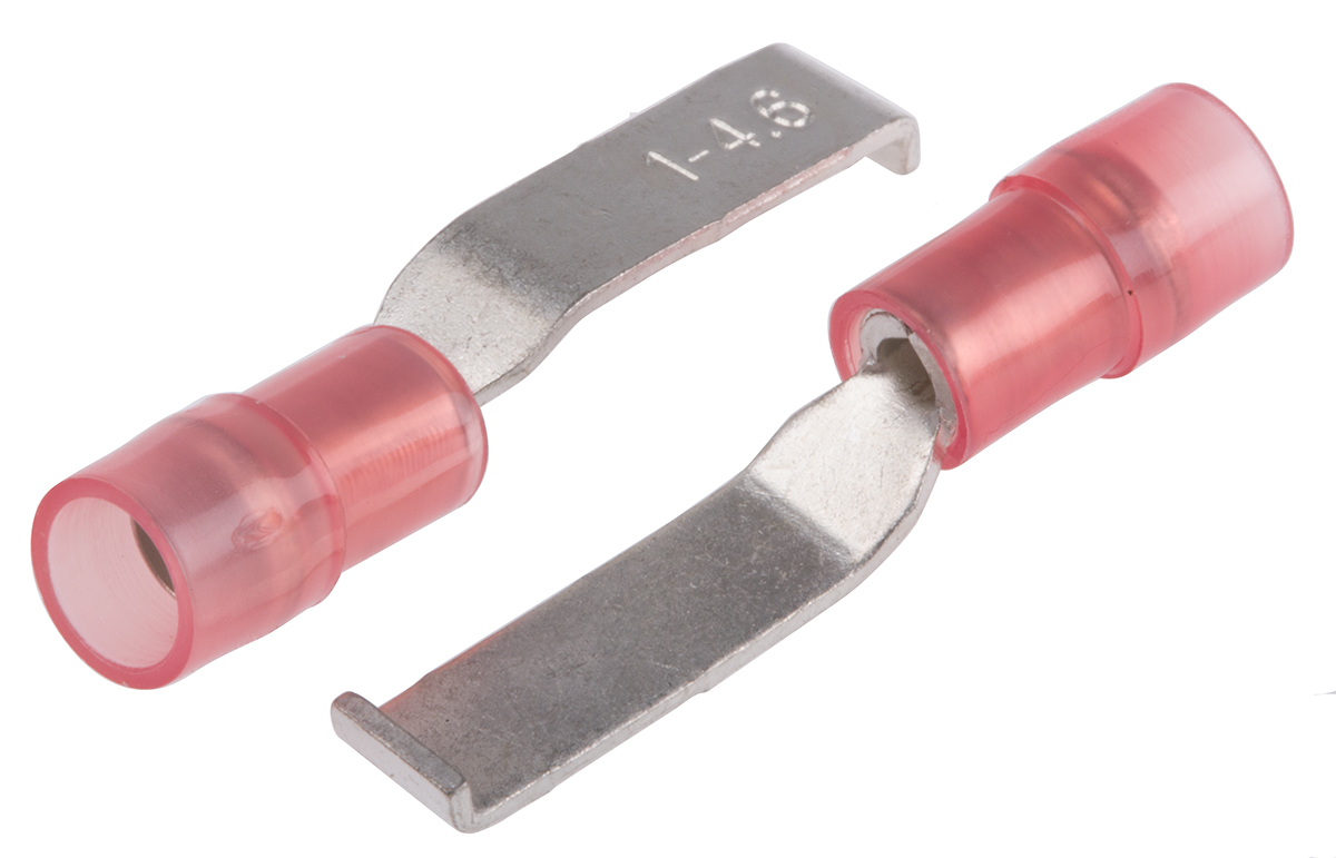 This is Hooked Insulated Crimp Blade Terminal 17.4mm Blade Length 0.5mm² to 1.5mm² 22AWG to 16AWG Red manufactured by RS Pro. The manufacturer part number is 267-4372. It is supplied as unshrouded. The wire has a maximum size of 1.5mm². Its blade is 4.6mm in width . While the minimum wire size AWG includes 22awg. It is offered with a standard blade thickness about 0.75mm . In addition, male is the available "Gender" of the product. It has a decent red colour. It has an overall length of 28.2mm. It is hooked yes . The blade has a length of 17.4mm. It has a robust nylon insulation material. The high-quality tin is used as contact plating material. The inner diameter of the product is 4.5mm. Insulation Option: insulated. Its maximum wires size includes 16awg. On the other hand, the wire has 0.5mm² of minimum size. The product is made from sturdy copper materials.
