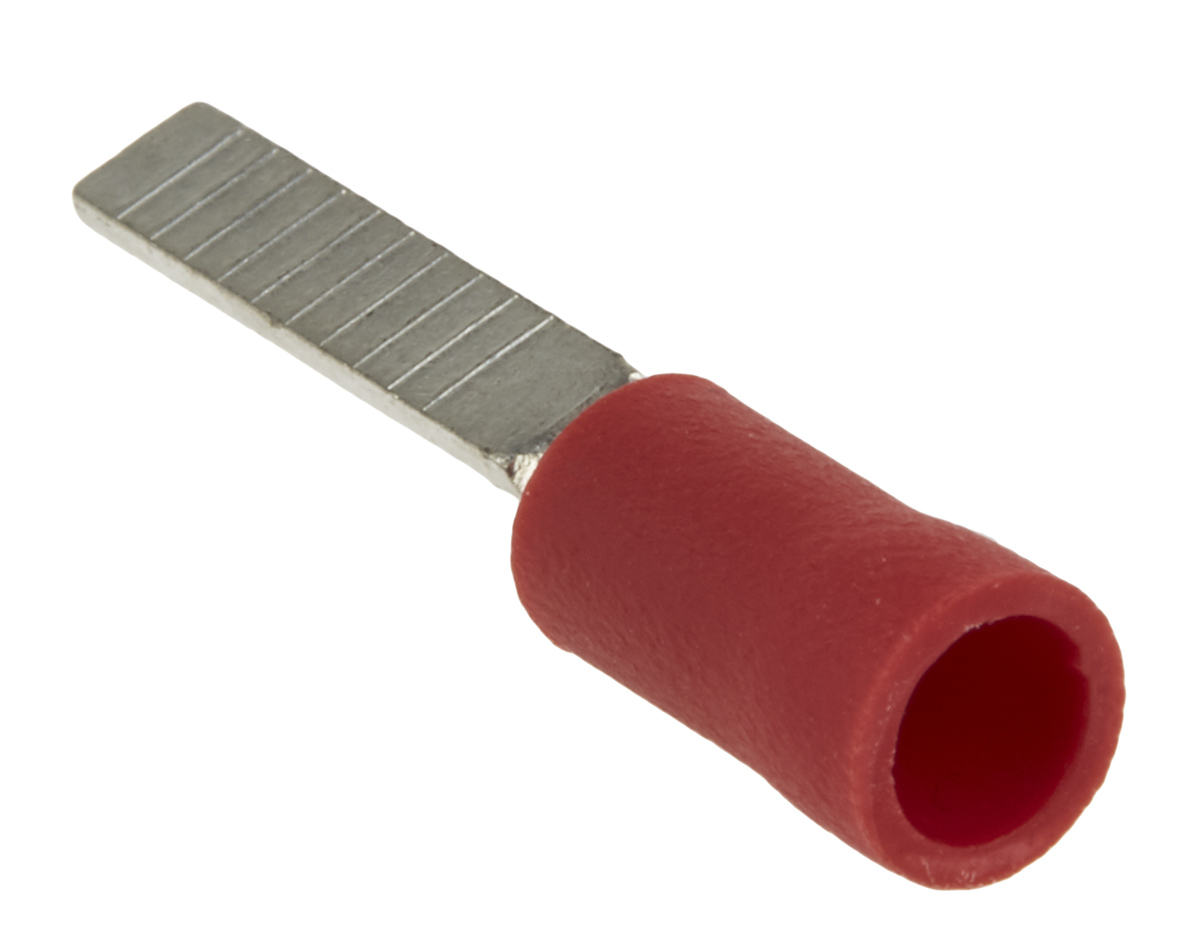 This is Insulated Crimp Blade Terminal 14mm Blade Length 0.5mm² to 1.5mm² 22AWG to 16AWG Red manufactured by RS PRO. The manufacturer part number is 178-7245. The wire has a maximum size of 1.5mm². Its blade is 3mm in width . It is offered with a standard blade thickness about 0.75mm . While the minimum wire size AWG includes 22awg. It has a decent red colour. It has an overall length of 23.8mm. It is hooked no . The blade has a length of 14mm. It has a robust vinyl insulation material. The inner diameter of the product is 1.7mm. Insulation Option: insulated. Its maximum wires size includes 16awg. On the other hand, the wire has 0.5mm² of minimum size. The product is made from sturdy copper materials.